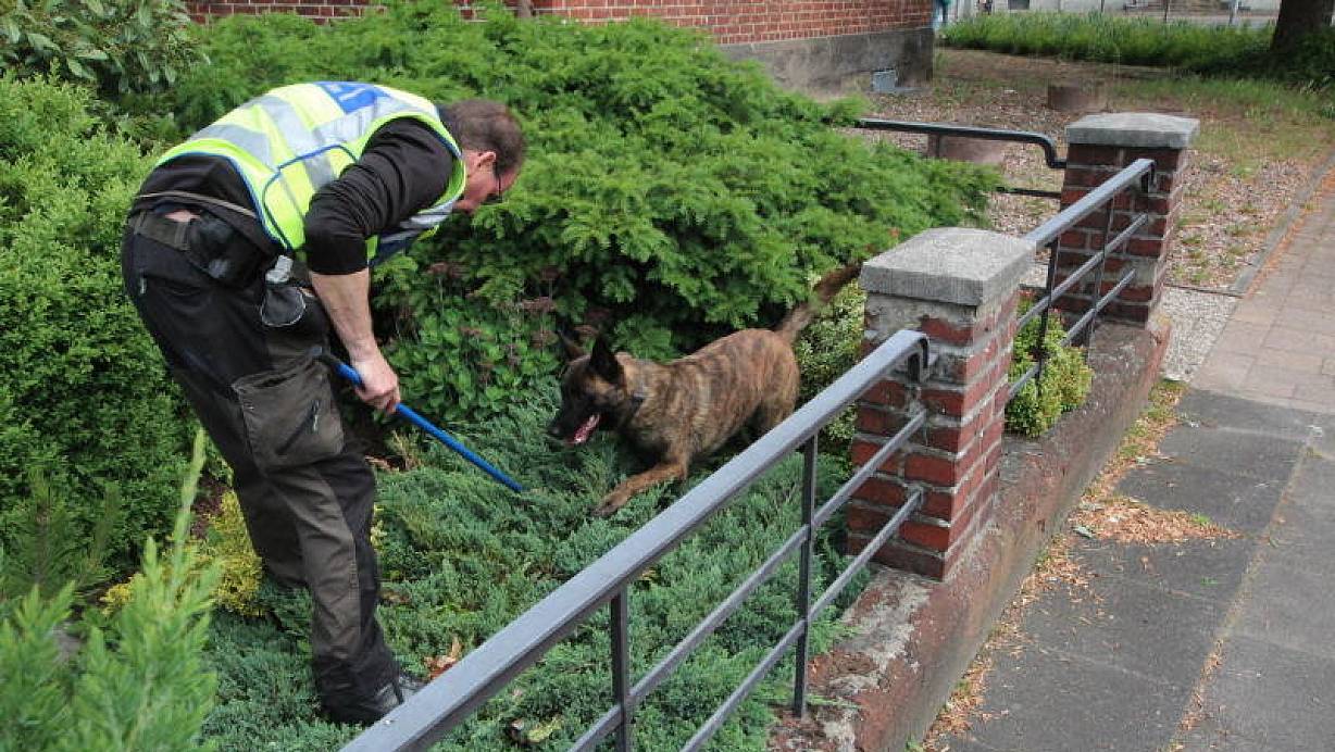 Ein Spürhund der Polizei bei der Arbeit. Die Suche nach dem Messer blieb bisher erfolglos. | © Lüdeking