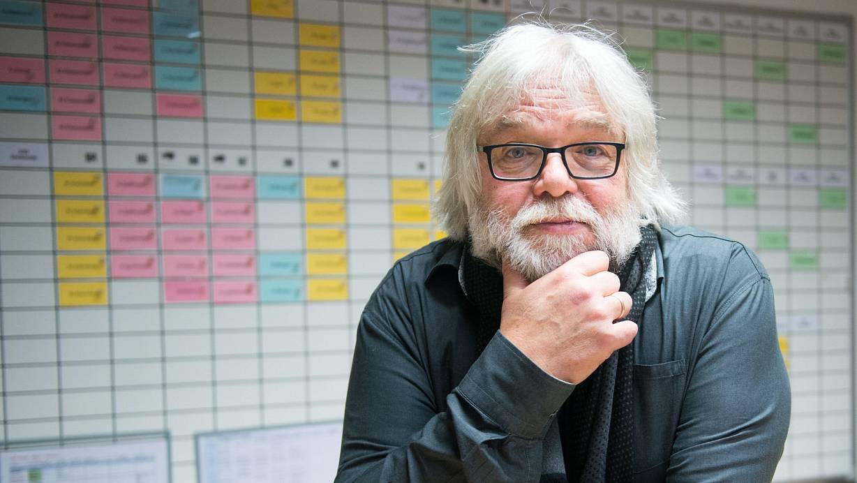 Thomas Steingrube blickt nachdenklich in die Zukunft. Hinter ihm hängt der Plan, auf dem ersichtlich ist, welche Musiklehrer was, wann und wo unterrichten. | © Ralf Bittner