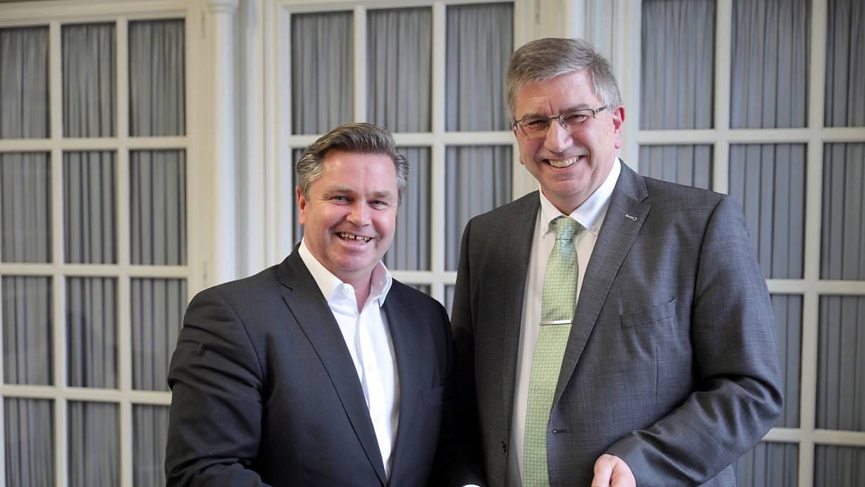 Bürgermeister Tim Kähler und Wirtschaftsförderer Dieter Wulfmeyer freuen sich über die wirtschaftliche Entwicklung der Stadt. | © FRANK-MICHAEL KIEL-STEINKAMP