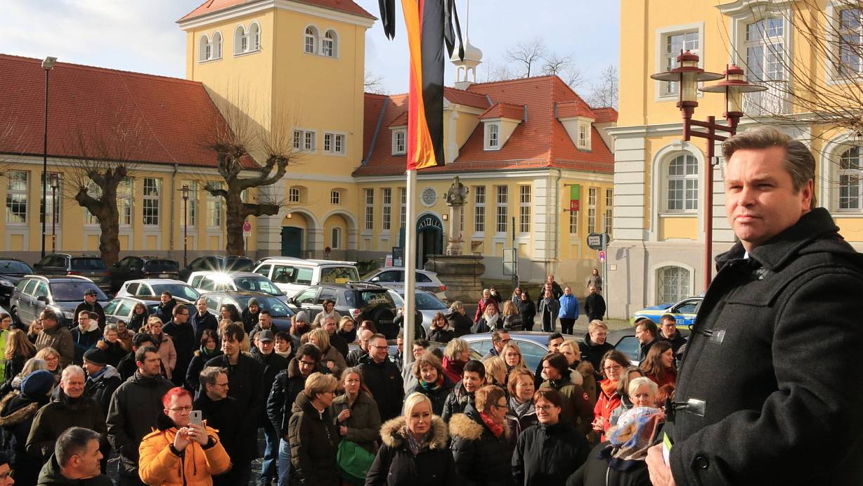 Viele Herforderinnen und Herforder folgten dem spontanen Aufruf zu einer Mahnwache am Rathaus. | © Natalie Gottwald