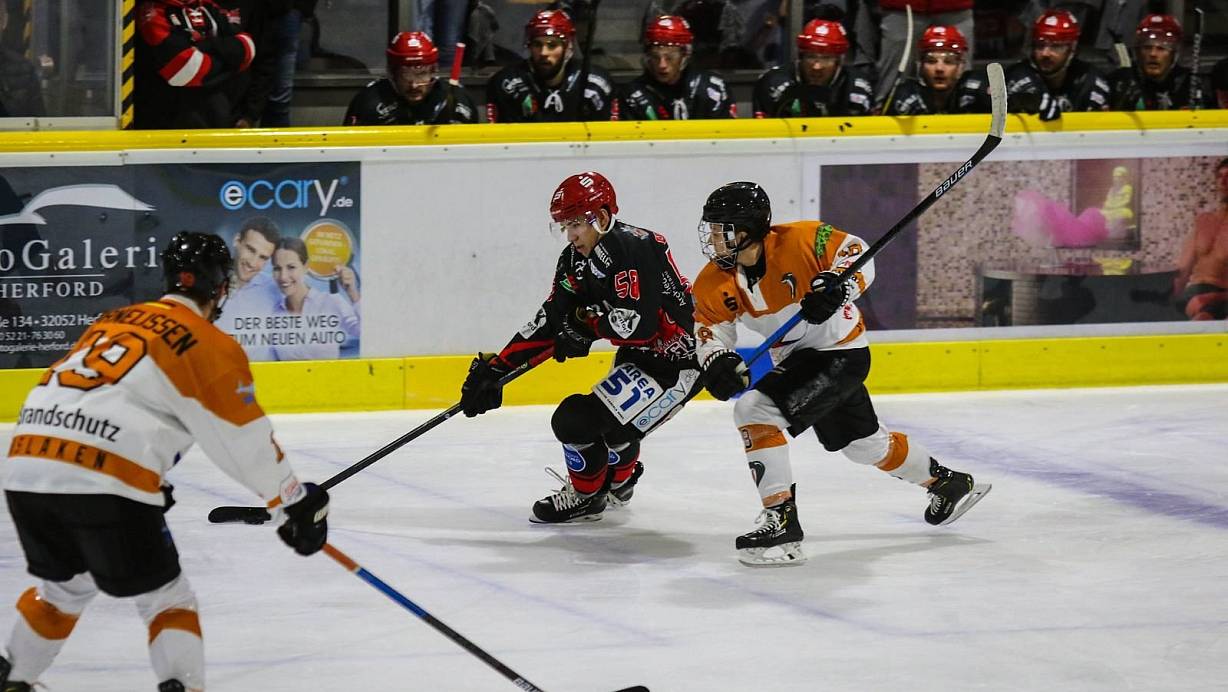 Auf Seiten der Gastgeber, blieb Guryca jedoch nach den ersten 20 Minuten in der Kabine und wurde durch den Ex-Herforder Tim Stenger ersetzt. Fabian Staudt eröffnete in der 23. Minute in Überzahl den Torreigen mit seinem Treffer zum 1:0 für Herford. Fünf Minuten später erhöhte Guillaume Naud auf 2:0 und als Maximilian Droick in der 33. Minute sogar das 3:0 gelang, nahm EGDL-Trainer Frank Petroza eine Auszeit, um sein Team neu einzustimmen. Dieses zeigte deutlich Wirkung und der EGDL gelang noch vor der zweiten Pause das 1:3 durch Kevin Lavallee.