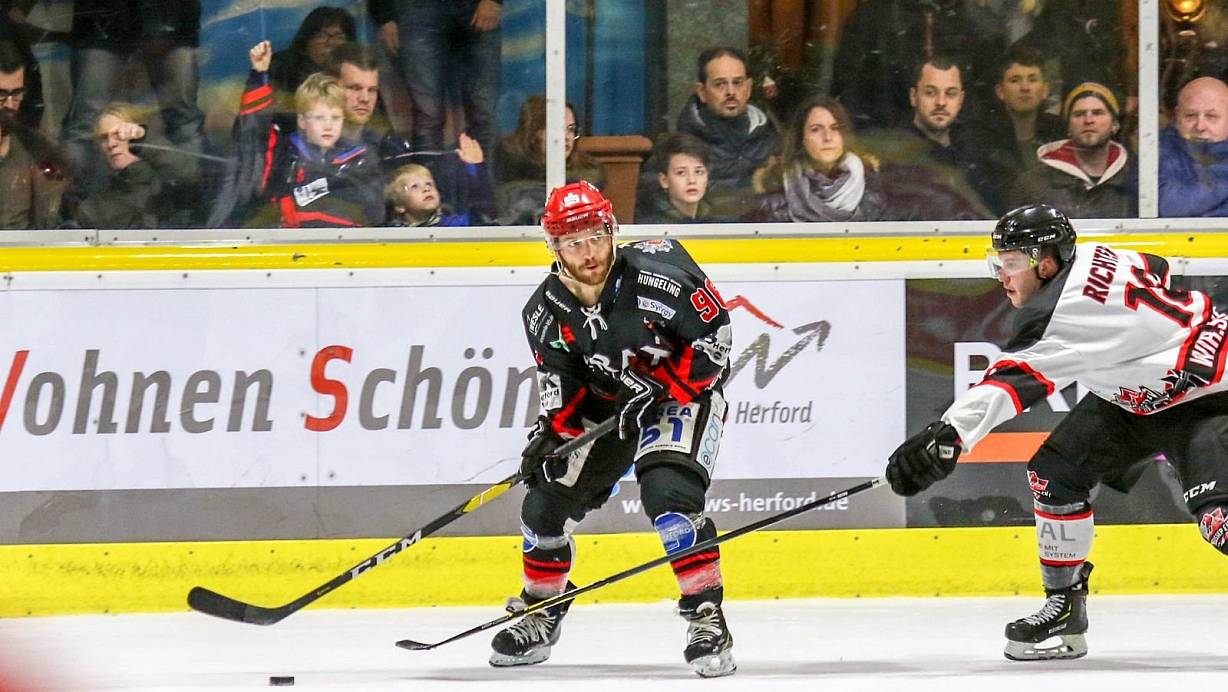 Killian Hutt (l.) erzielte beim 4:8 in Neuwied noch einmal zwei Treffer für den Herforder EV | © Yvonne Gottschlich