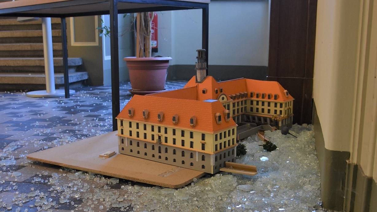 Der Angeklagte hatte das Modell des Herforder Rathauses im Foyer umgeworfen. | © Stadt Herford