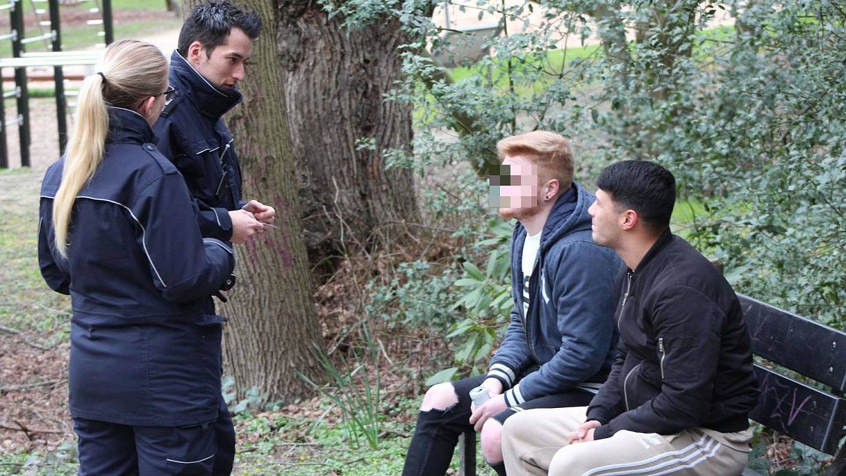 Melissa Romanowsky und Stefan Wolff kontrollieren zwei junge Herren. | © Jobst Lüdeking