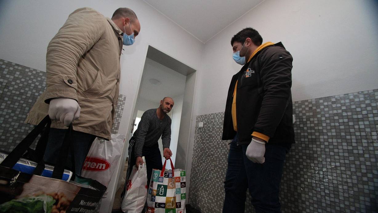 Einige kaufen ein für jene, die es selbst nicht tun sollten. Mervan Omar (r.) und Hussein Khedr (l.) haben zum Beispiel Einkäufe für die Corona-Hilfe Hiddenhausen erledigt. | © Peter Steinert