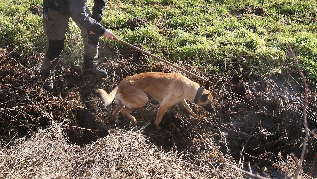 Polizeihund spürt flüchtenden Fahrradfahrer unter einem Asthaufen auf
