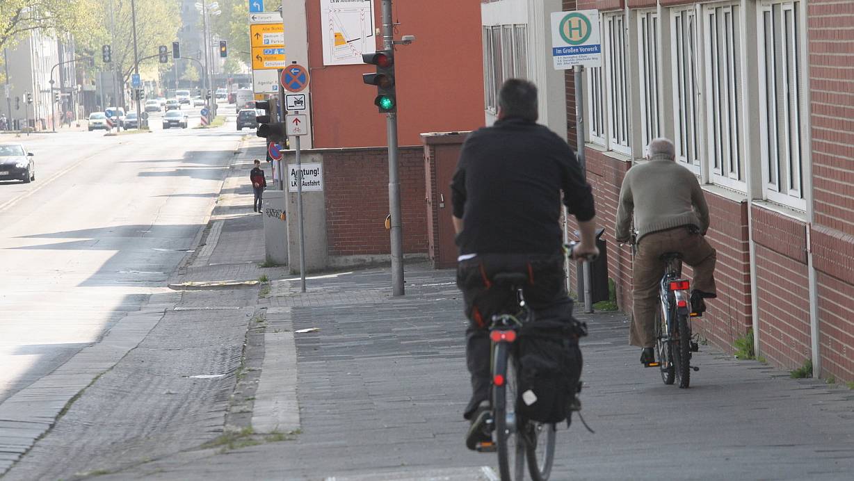 Fußgänger und Radler müssen sich den Bürgersteig an der Mindener Straße teilen. | © Peter Steinert