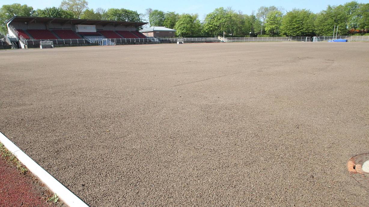 Noch ist es nur eine graue Fläche. Doch schon bald soll im Ludwig-Jahn-Stadion der Rasen sprießen. | © Peter Steinert