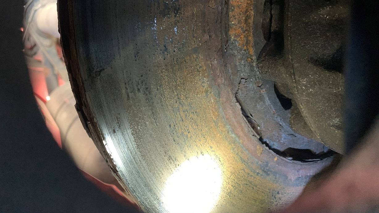 Die verschlissene Bremsscheibe des Sattelanhängers. | © Polizei Bielefeld