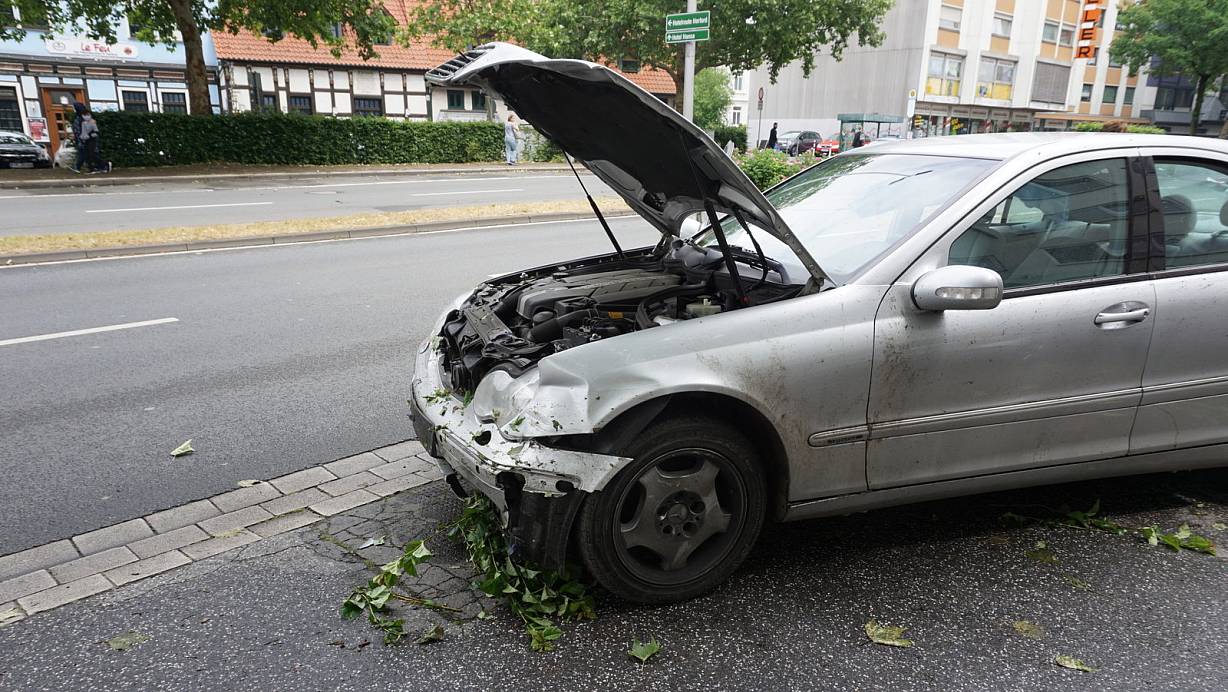 Der Mercedes ist gegen parkende Autos an der Berliner Straße geprallt. | © Christina Römer