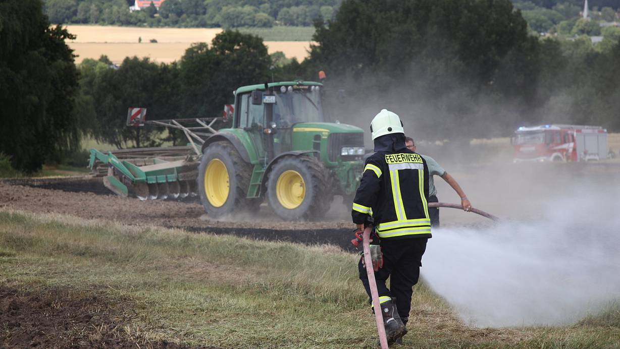Die Feuerwehr beim Einsatz wegen eines Flächenbrandes in Rödinghausen im Juli 2019. | © Torben Stallmann