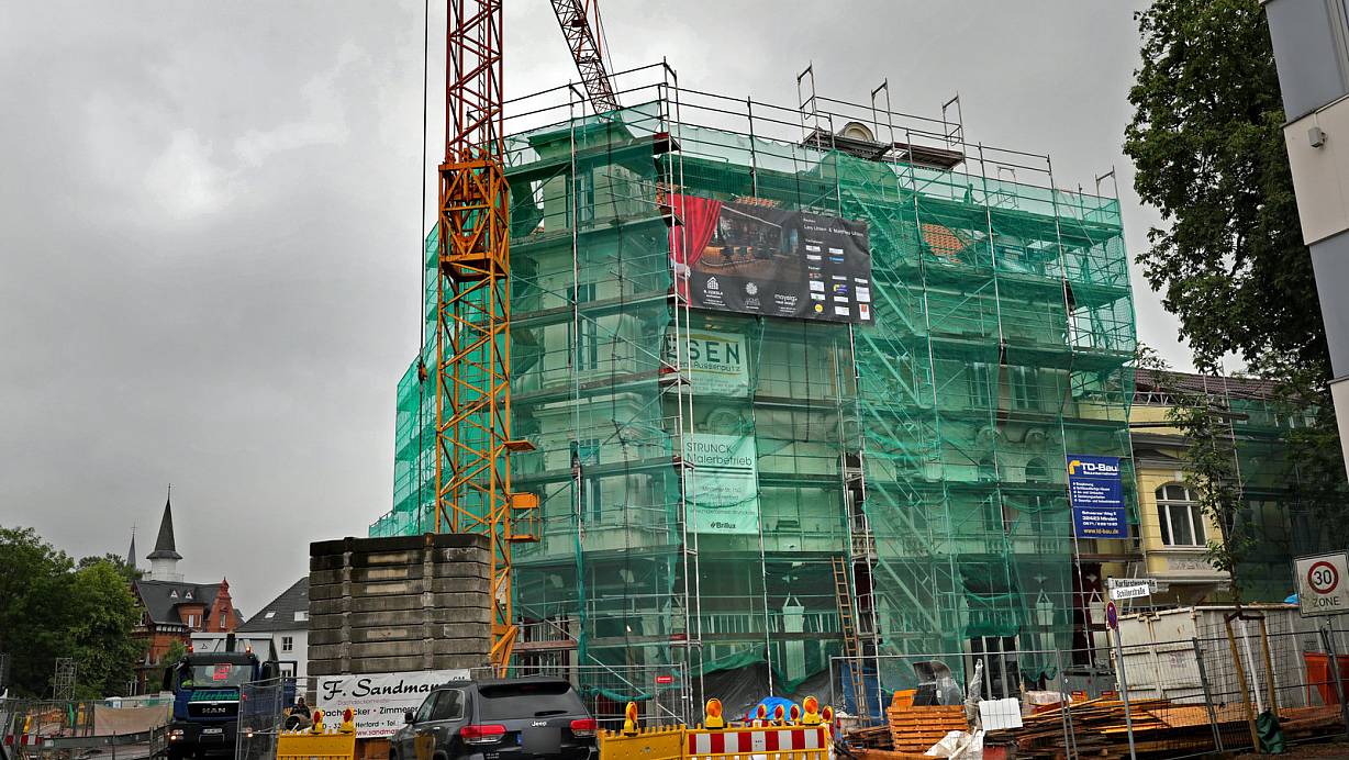 Die Fertigstellung des denkmalgeschützten Gebäudes an der Ecke Schillerstraße/Kurfürstenstraße hängt auch Zeitplan für die Brücke und die Straße. | © Frank-Michael Kiel-Steinkamp
