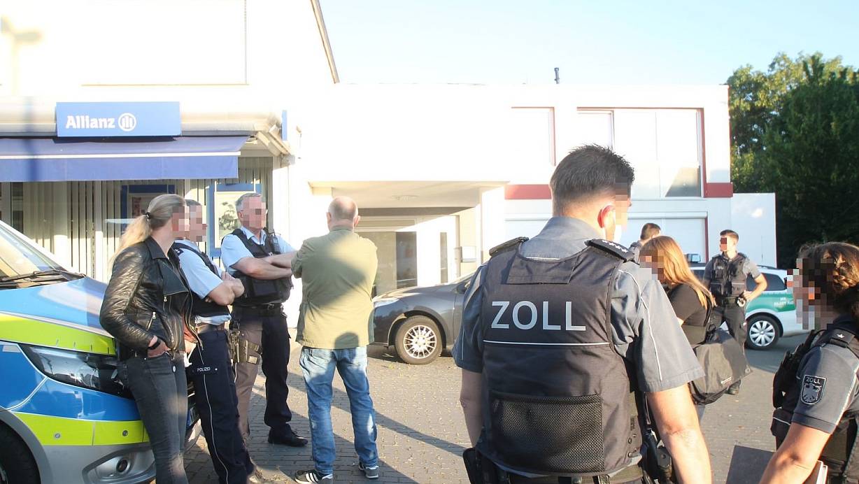 Während Zoll-Beamte im Inneren kontrollieren, warten weitere Beamte sowie Experten der Bauaufsicht und des Ausländeramts vor dem Gebäude. | © Jobst Lüdeking