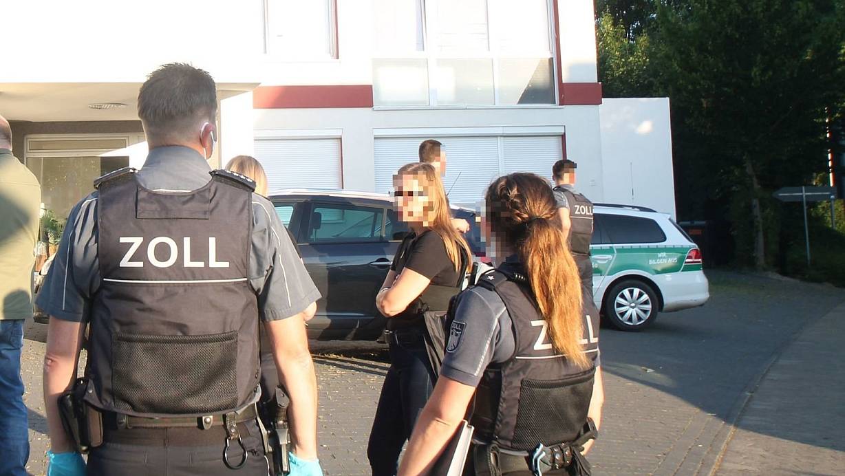 Die Aufnahme zeigt die Zollaktion am Donnerstagmorgen. Rechts ist die Durchfahrt zum Parkplatz zu sehen, wo die Autos standen. | © Jobst Lüdeking
