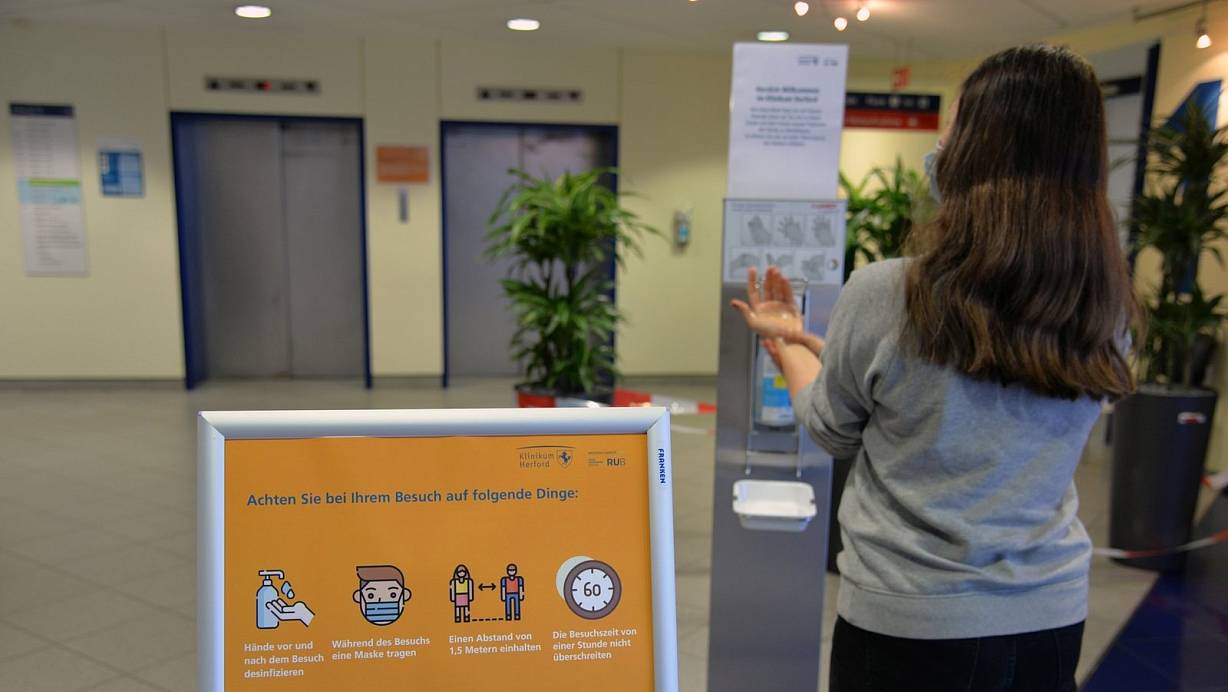 Bei Bedarf wird den Besuchern erklärt, wie die richtige Handdesinfektion funktioniert. | © Klinikum Herford