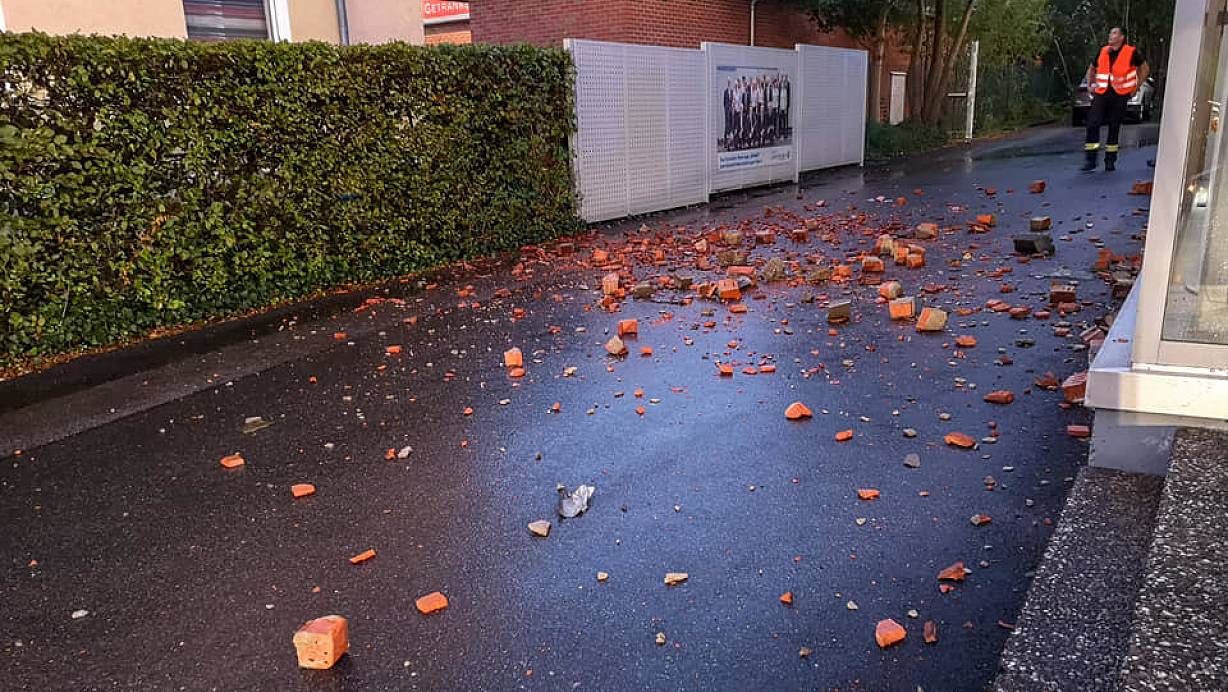 Wegen des Blitzeinschlags fielen Steine des Kamins herunter. | © Feuerwehr Herford