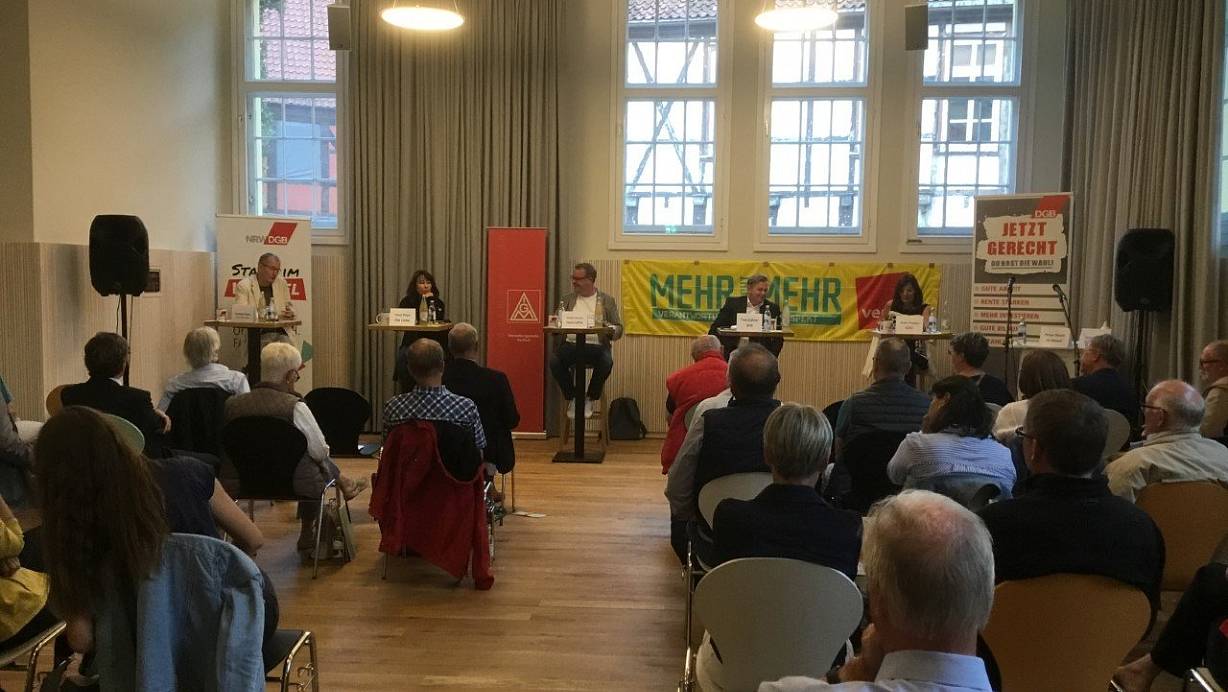 Vier von sieben Bewerber fürs höchste Amt der Stadt debattieren gewerkschaftliche Themen. Drei hatte der Deutsche Gewerkschaftsbund, Kreisverband Herford, nicht auf Podium eingeladen.