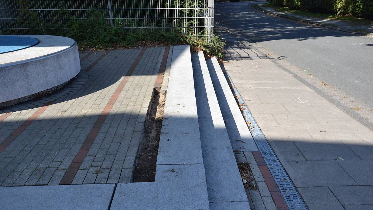 Die Unbekannten haben fast einen Quadratmeter des Pflasters genommen und in einen Busch geschmissen. Vielleicht erklären sie das "Warum?" irgendwann mal bei einer Befragung auf der Wache. | © Polizei Herford