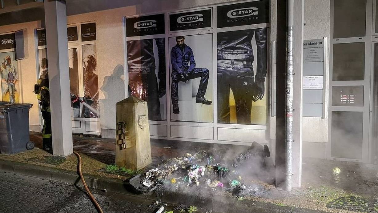 In der Straße Mausefalle hatten zwei Müllbehälter gebrannt, die direkt an einem Modegeschäft standen. Ein Angriffstrupp der hauptamtlichen Wache konnte das Feuer jedoch schnell unter Kontrolle bringen. Durch die Wärme des Feuers war die Fensterscheibe des Bekleidungsgeschäftes gesprungen. In das Treppenhaus des Mehrfamilienhauses war Rauch hereingezogen. Die Feuerwehr hatte nach eigenen Angaben den Innenraum kontrolliert, es ergab sich aber kein Hinweis darauf, dass der Brand übergesprungen war.