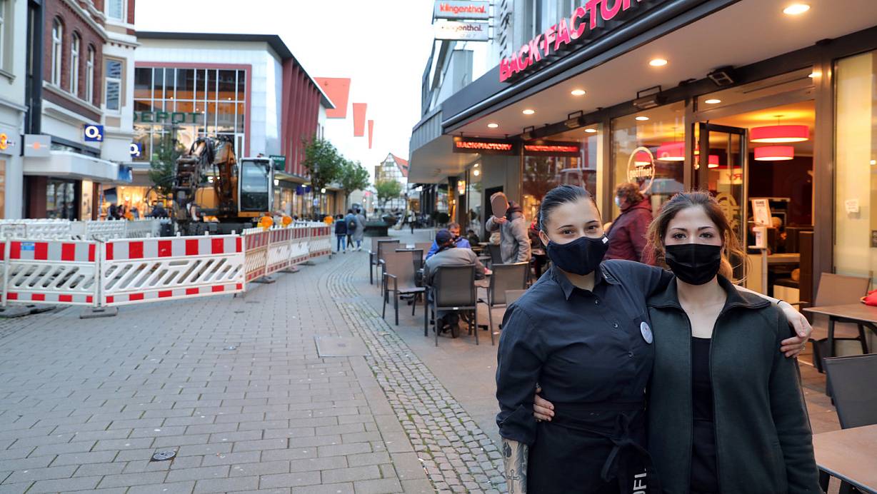 Janine Zimmermann und Betül Yazan sind Kassierinnen der "Backfactory" im Gehrenberg, vor der jetzt durch eine Baustelle ein Engpass entstanden ist. | © Frank-Michael Kiel-Steinkamp