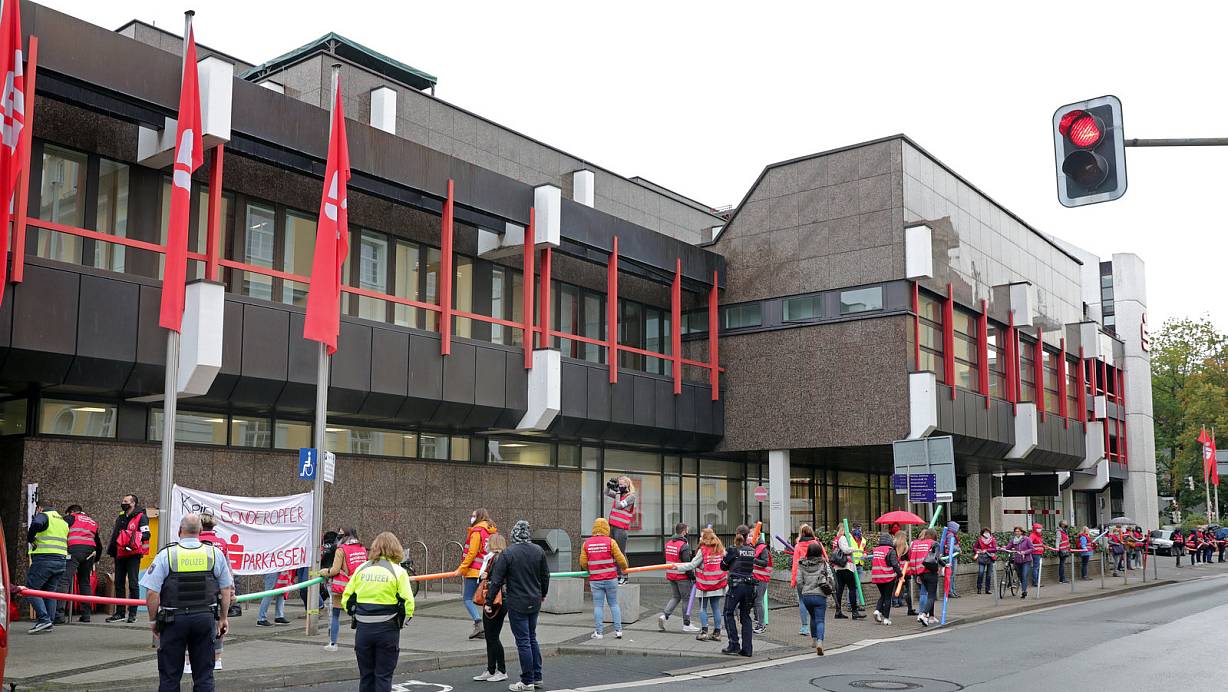 Was die Gewerkschaften für die Mitarbeiter der Sparkasse auch mit Druck - wie hier durch einen Warnstreik am 28. Septemberin Herford - ausgehandelt haben, kommt auch den Vorständen zugute. | © Frank-Michael Kiel-Steinkamp