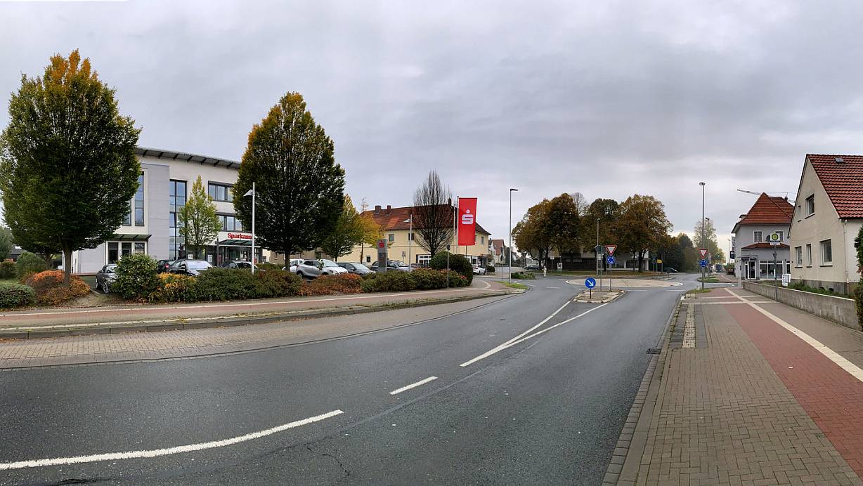 Die frühere Kreuzung in Herringhausen-Mitte ist inzwischen zum Kreisverkehr geworden. Links die Filiale der Sparkasse. | © Frank-Michael Kiel-Steinkamp
