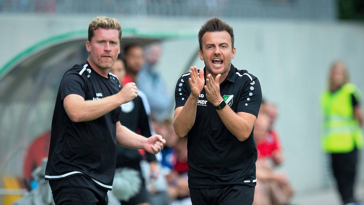 Wieder vereint: Rödinghausens Meistertrainer Enrico Maaßen hat Sebastian Block (l.) zur U23 von Borussia Dortmund geholt, zumindest in Teilzeit. Dort erhält der Lehrer bislang sehr gute Noten. | © Noah Wedel
