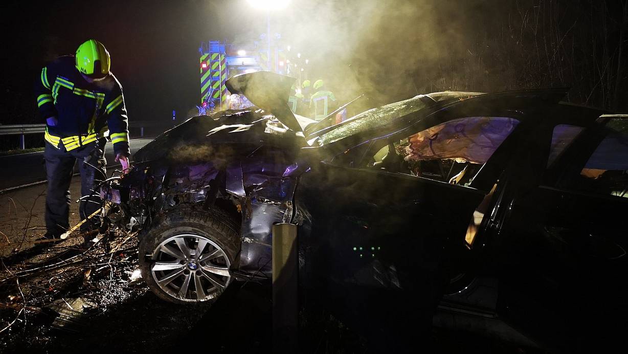 Laut Mitteilung der Feuerwehr wurden die Rettungskräfte um 0.53 Uhr alarmiert und darüber in Kenntnis gesetzt, dass es am Übergang der vierspurigen B 239 auf die zweispurige B 61 einen schweren Verkehrsunfall gegeben hat.