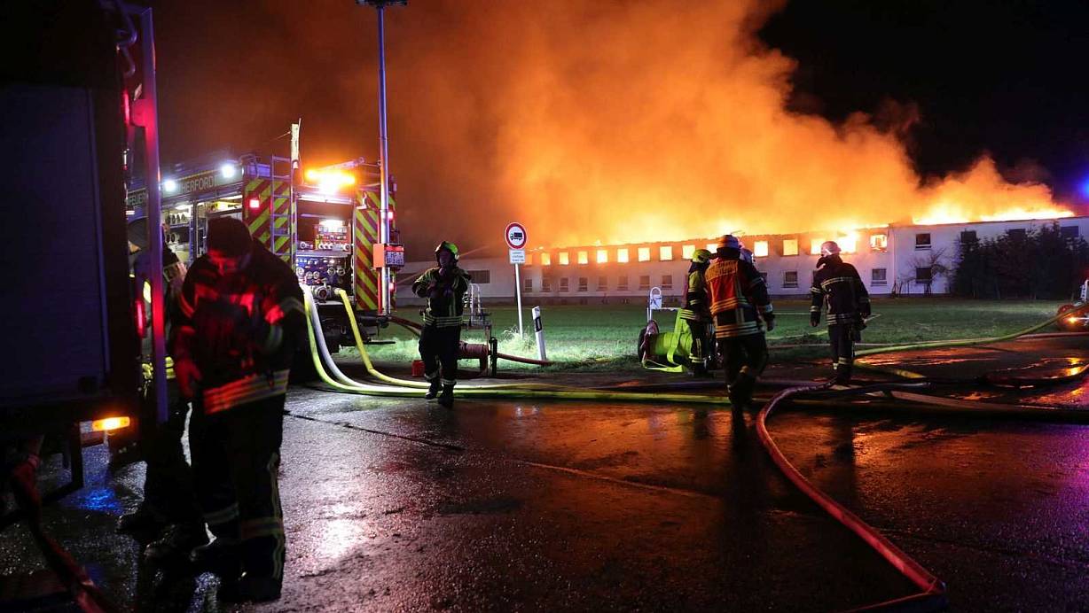 Seit 21 Uhr ist die Feuerwehr bei einem Brand in Falkendiek im Einsatz. Dort brennt die Halle eines Unternehmens. Die Löscharbeiten dürften bis zum Samstagmorgen andauern.