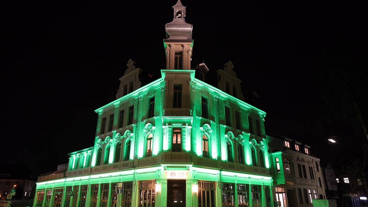 Die Beleuchtung des denkmalgeschützten Hauses ist je nach Einstellung farbig wechselnd | © Frank-Michael Kiel-Steinkamp