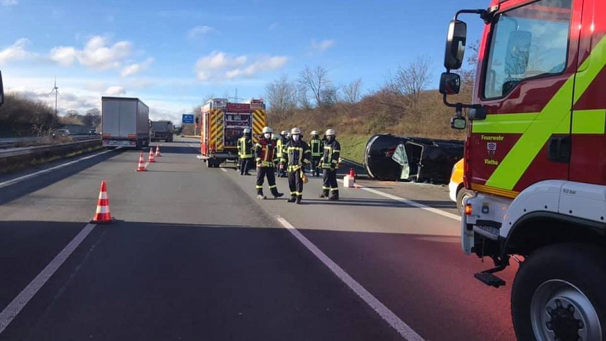 Der Fahrer musste nicht von der Feuerwehr aus dem Auto geschnitten werden. Offenbar touchierte der Pkw zuvor einen Lkw und kam dadurch von der Fahrbahn ab.