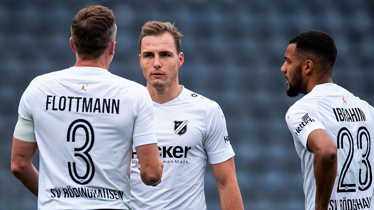 Tobias Reithmeir (2. v. l.) sorgte in Oberhausen für den Rödinghauser Siegtreffer.  | © Noah Wedel