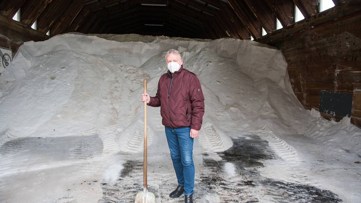 600 Tonnen Salz lagern auf dem Gelände der SWK. Geschäftsführer Wolfgang Rullkötter sieht Eis und Schnee entspannt entgegen. | © Ralf Bittner