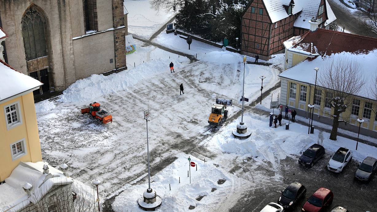 So langsam werden die rein weißen Flächen nach und nach weniger in der Innenstadt. Hier ist die SWK auf dem Münsterkirchplatz aktiv. Foto: Frank-Michael Kiel-Steinkamp | © Frank-Michael Kiel-Steinkamp