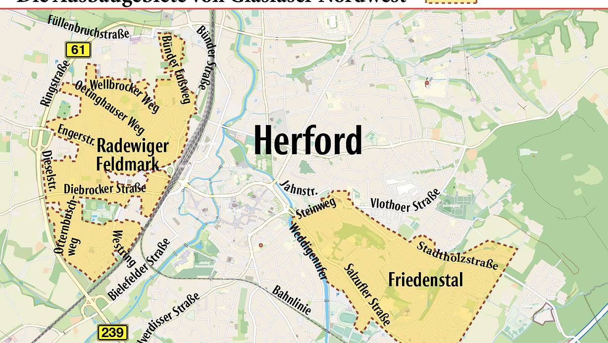 Großflächig soll in Kürze Glasfaser in der Radewig Feldmark (gelbe Fläche l.) verlegt werden. | © Jürgen Schultheiß