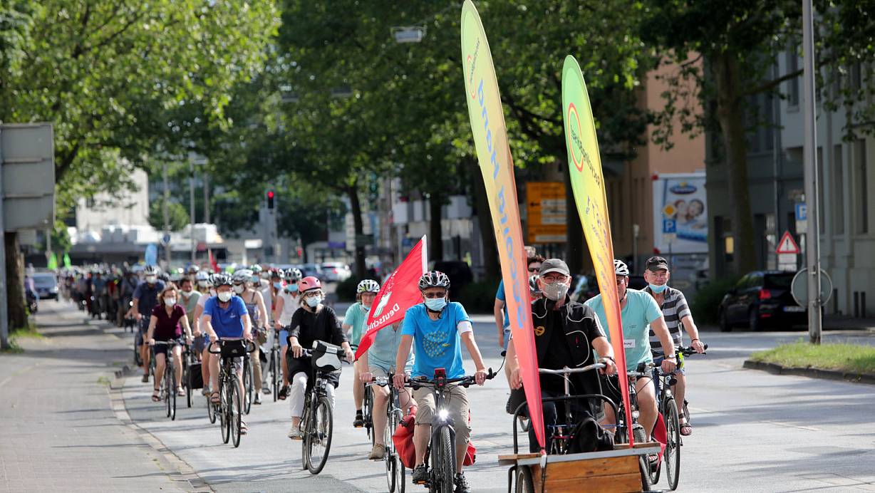 Weit über 100 Demonstranten nahmen ein beschwerliches Radeln bei Hitze mit Maske in Kauf. Pfarrer Berthold Keunecke ermunterte, selbstbewusster im Straßenverkehr aufzutreten.