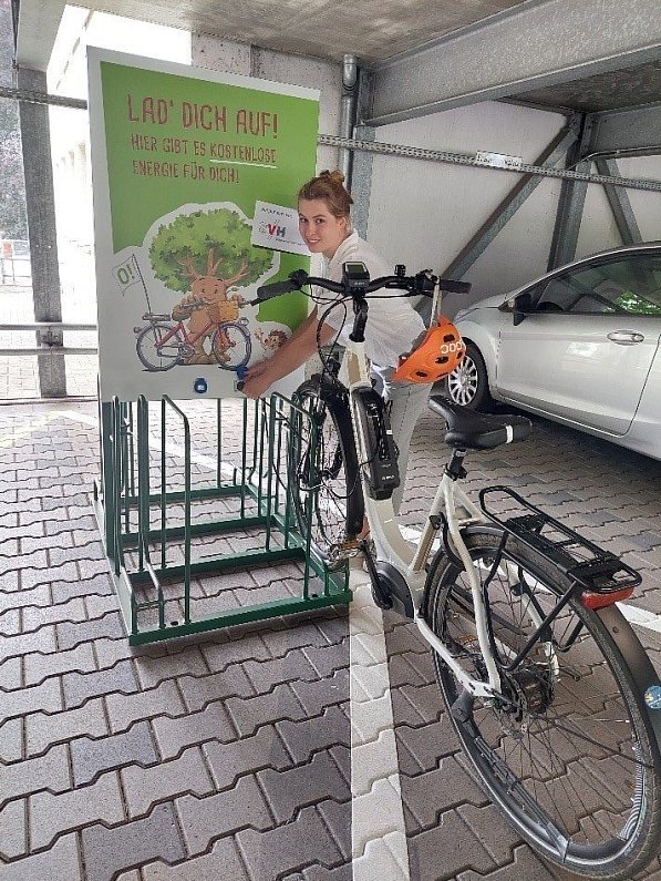 Mitarbeiter sowie Gäste des Elsbach-Areals können hier jetzt überdacht ihre Pedelecs abstellen und gleichzeitig aufladen. Der Strom wird von der Stadtverkehrsgesellschaft kostenlos zur Verfügung gestellt. Hiermit möchte die SVH ein Zeichen in Richtung Verkehrswende und klimafreundliche Mobilität setzen.