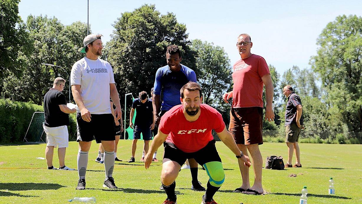 Die Saisonvorbereitung beim Eishockey-Oberligisten hat schweißtreibend begonnen. Doch auch der Spaß kommt beim Auftakt im Jahnstadion nicht zu kurz.