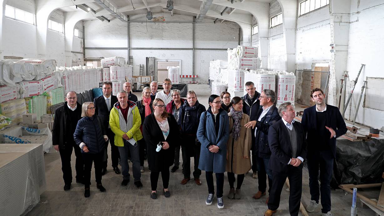 In einer alten Tabak-Lagerhalle entsteht ein Übungs- und Spielort für die Bremer Philharmoniker. Die Delegation aus Herford durfte die Baustelle besuchen. | © Frank-Michael Kiel-Steinkamp