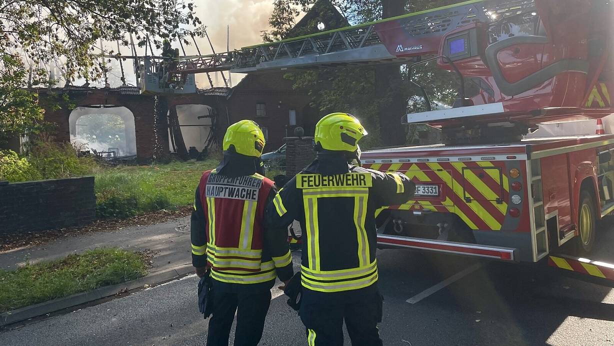 Die gesamte Feuerwehr Herford ist mit circa hundert Einsatzkräften an der Elverdisser Straße gewesen. Der Dachstuhl des Hauses ist weitestgehend eingestürzt.