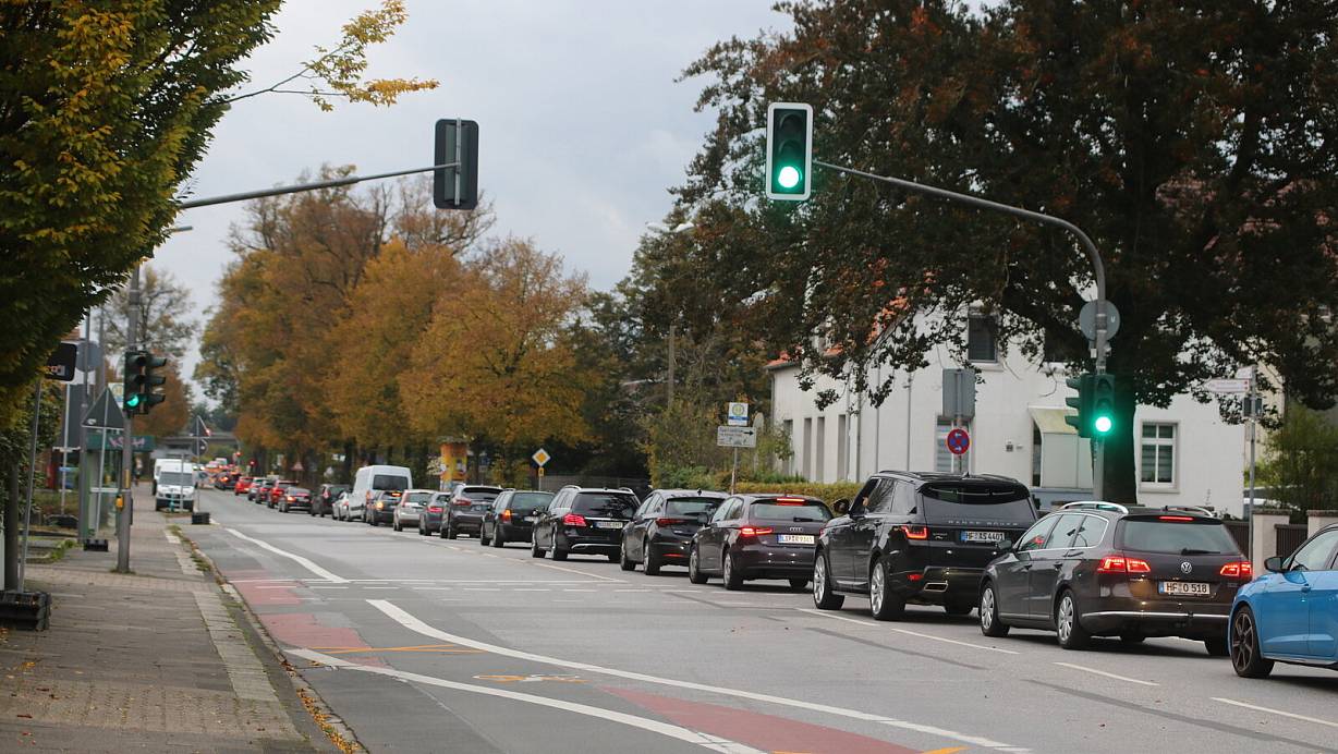 Kurz vor der Langzeit-Straßensperrung vor der Aral-Tankstelle legt eine weitere Baumaßnahme den Verkehr derzeit lahm.