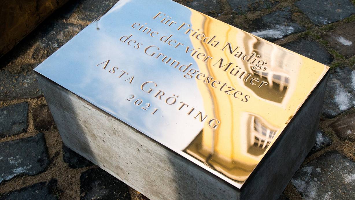 Wenige Tage vor der Einweihung ist das von Künstlerin Asta Gröting geschaffene Denkma eingetroffen. Es erinnert an Frieda Nadig, eine Mutter des Grundgesetzes.