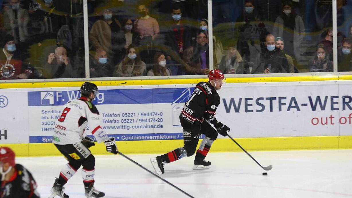 Der Kapitän geht voran: Björn Bombis (r.) erzielte in Essen zwei Treffer für den Herforder EV. | © Yvonne Gottschlich