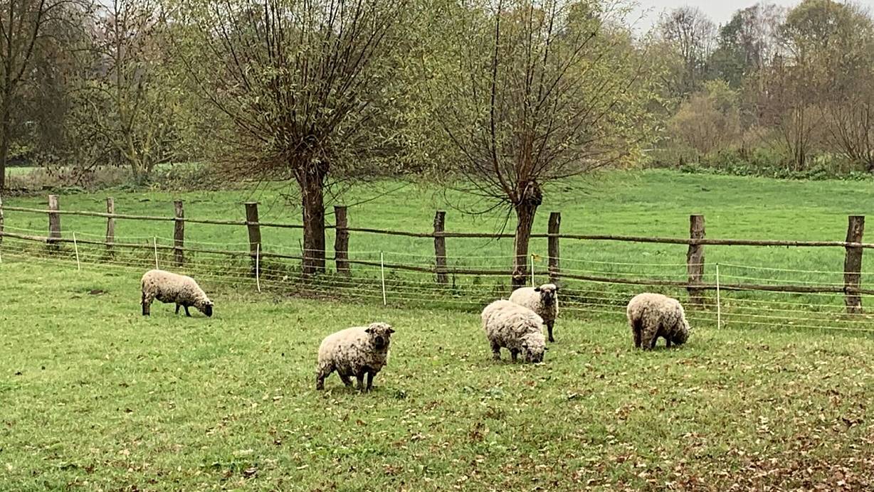 Fünf Shopshire-Schafe sorgen seit diesem Sommer auf natürliche Weise bei Moerkerks dafür, dass zwischen den kleinen Tannen nicht so viel Unkraut wächst - eine Alternative zum Einsatz von Chemie. | © Natalie Gottwald
