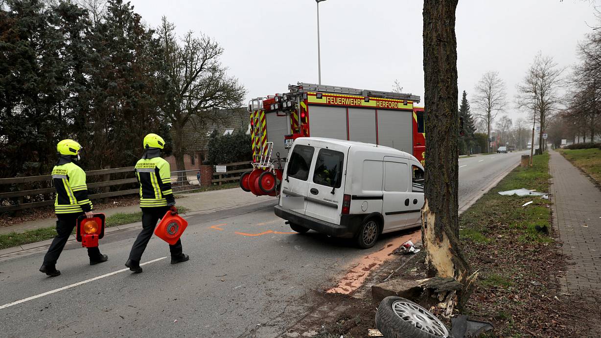 Apotheken-Lieferant rast in Herford gegen einen Straßenbaum
