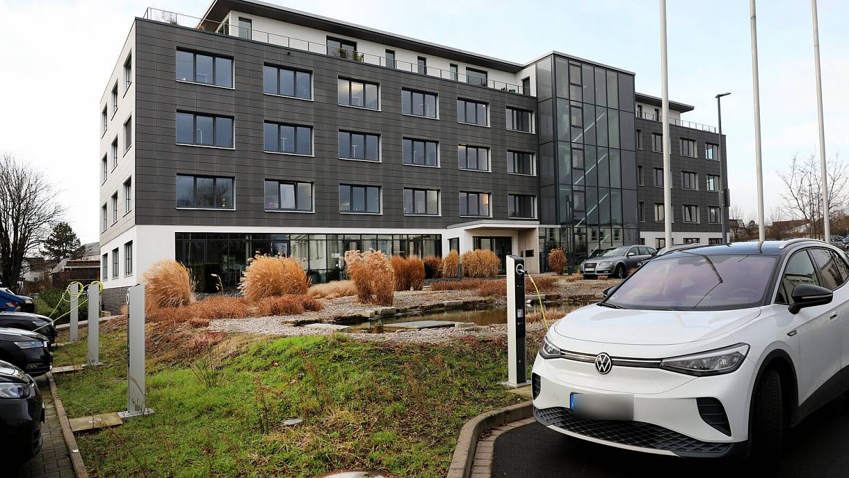 Die bisherige Archimedes-Firmenzentrale ist technisch auf dem neuesten Stand. Es gibt eine ganze Reihe von Ladesäulen für E-Autos. Vor dem Einzug der Sparkasse ab August muss nur in geringem Umfang renoviert werden. In dem Bürogebäude selbst wird es keine Anlaufstelle für Privatkunden geben. | © Frank-Michael Kiel-Steinkamp