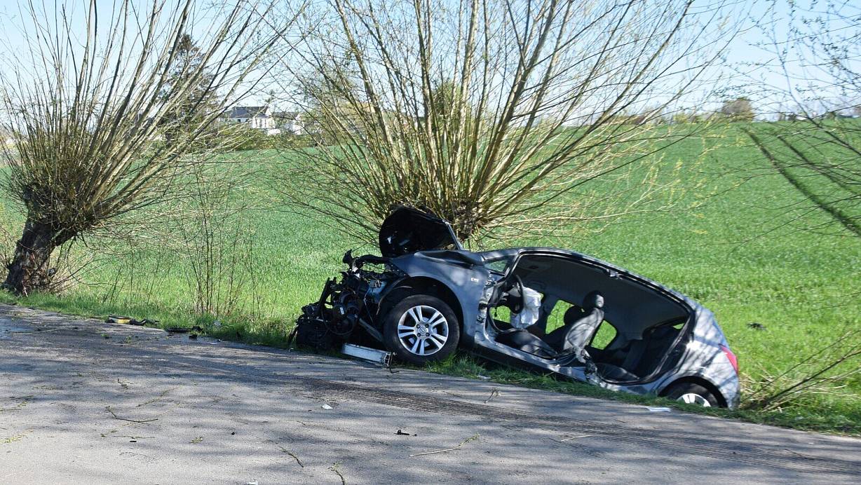 Der 21-Jährige aus Rödinghausen schleuderte gegen mehrere Straßenbäume. Er wurde schwer verletzt. | © Polizei Herford