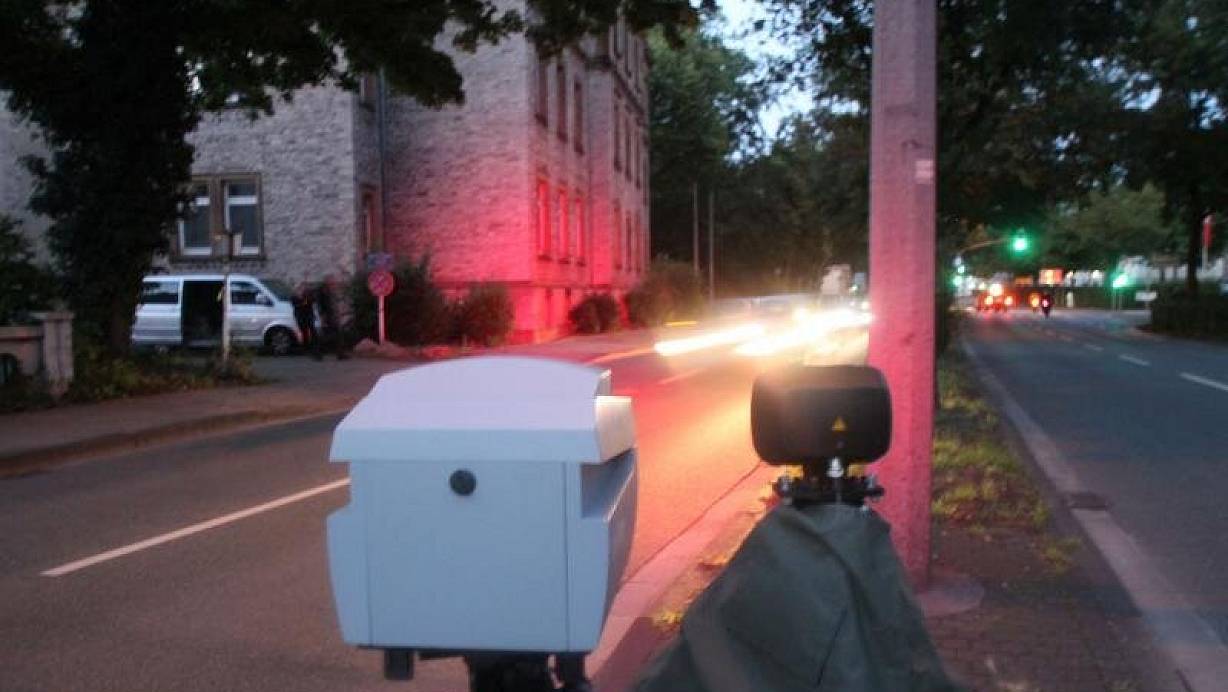 Roter Blitz – das Radargerät am Amtsgericht hat ausgelöst. An diesem Standort wurde die Spitzengeschwindigkeit in der Herforder Innenstadt bei einer Schwerpunktkontrolle der Polizei gemessen. | © Jobst Lüdeking