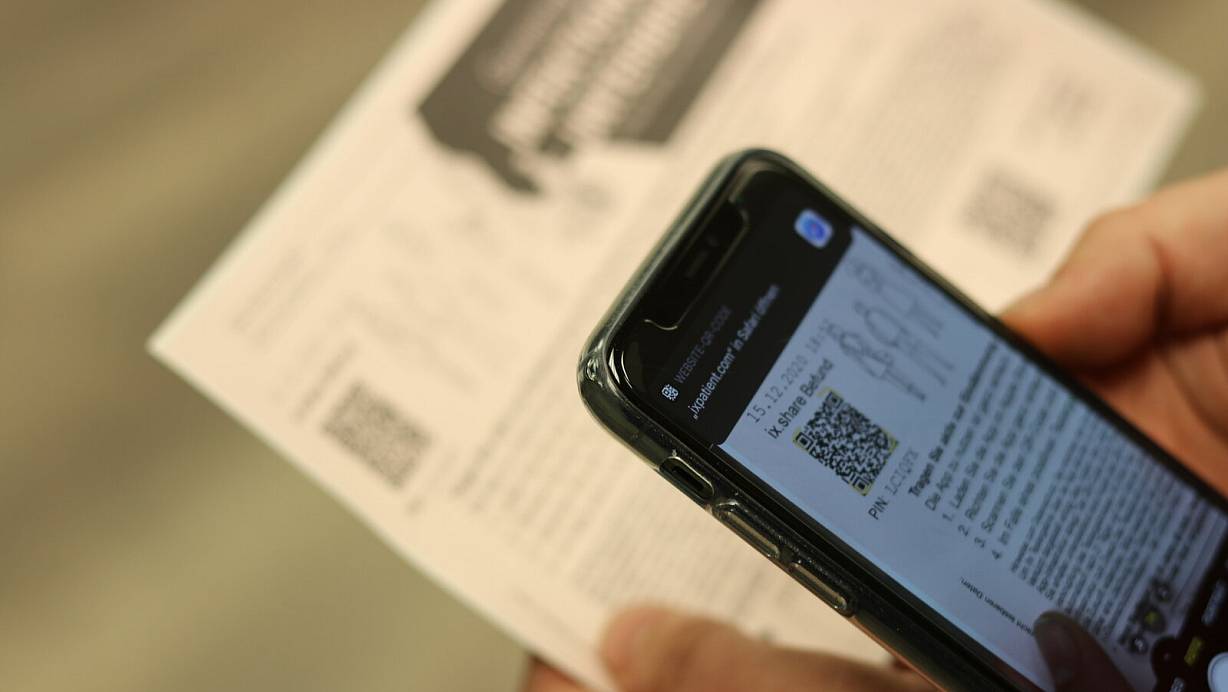 Das Ergebnis eines PCR-Tests: Mit dem Smartphone wird der QR-Code gescannt, um das Ergebnis des Tests einzusehen. | © David Knapp