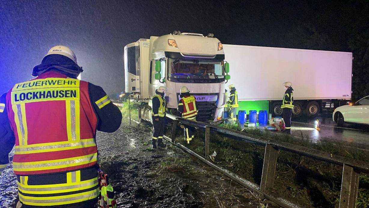 Die andere Verkehrsteilnehmer konnten rechtzeitig bremsen und blieben unverletzt. Durch die Wucht des Aufpralls wurde der Tank des LKW beschädigt, sodass Kraftstoff auslief. Die Feuerwehr pumpte den Diesel in andere Gefäße um und streute die ausgelaufenen Flüssigkeiten mit Bindemittel ab. Während des Einsatzes war zunächst die gesamte Autobahn in beiden Fahrtrichtungen voll gesperrt.
